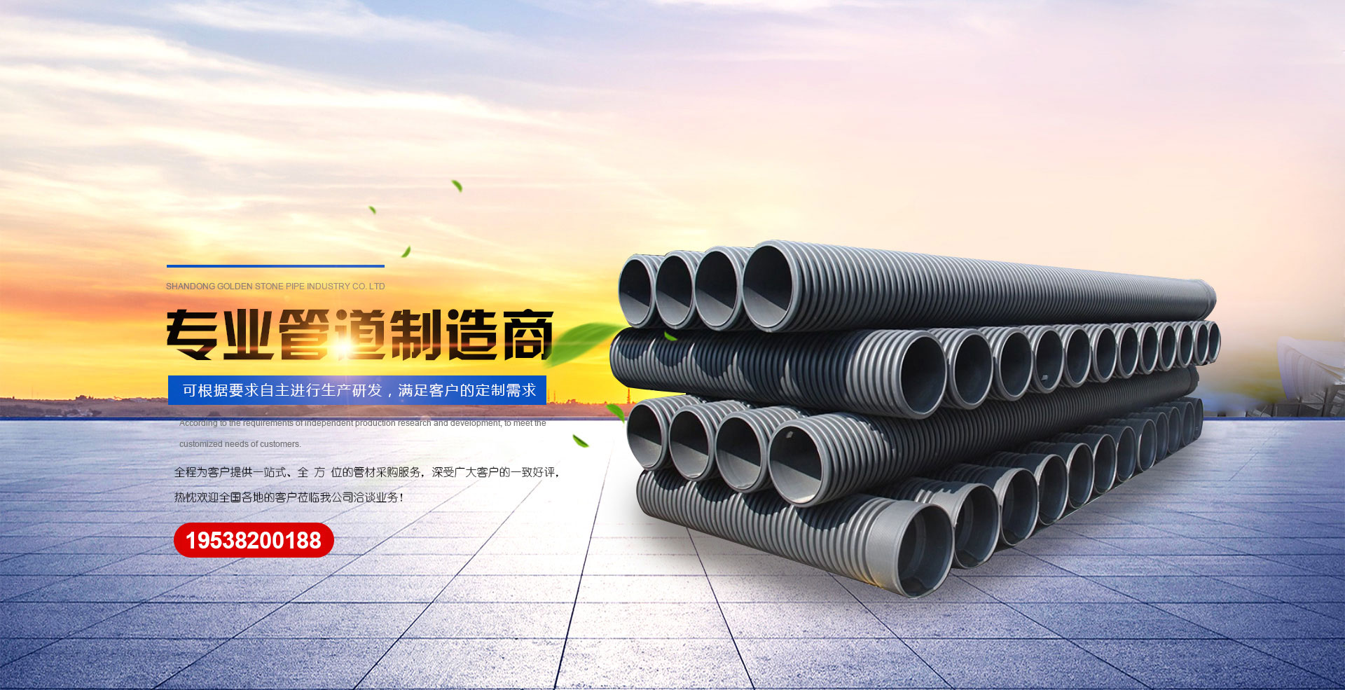 公司专业生产:HDPE双壁波纹管,钢带增强聚乙烯螺旋波纹管,HDPE中空壁缠绕管,PE给水、排水,HDPE检查井等管道产品。